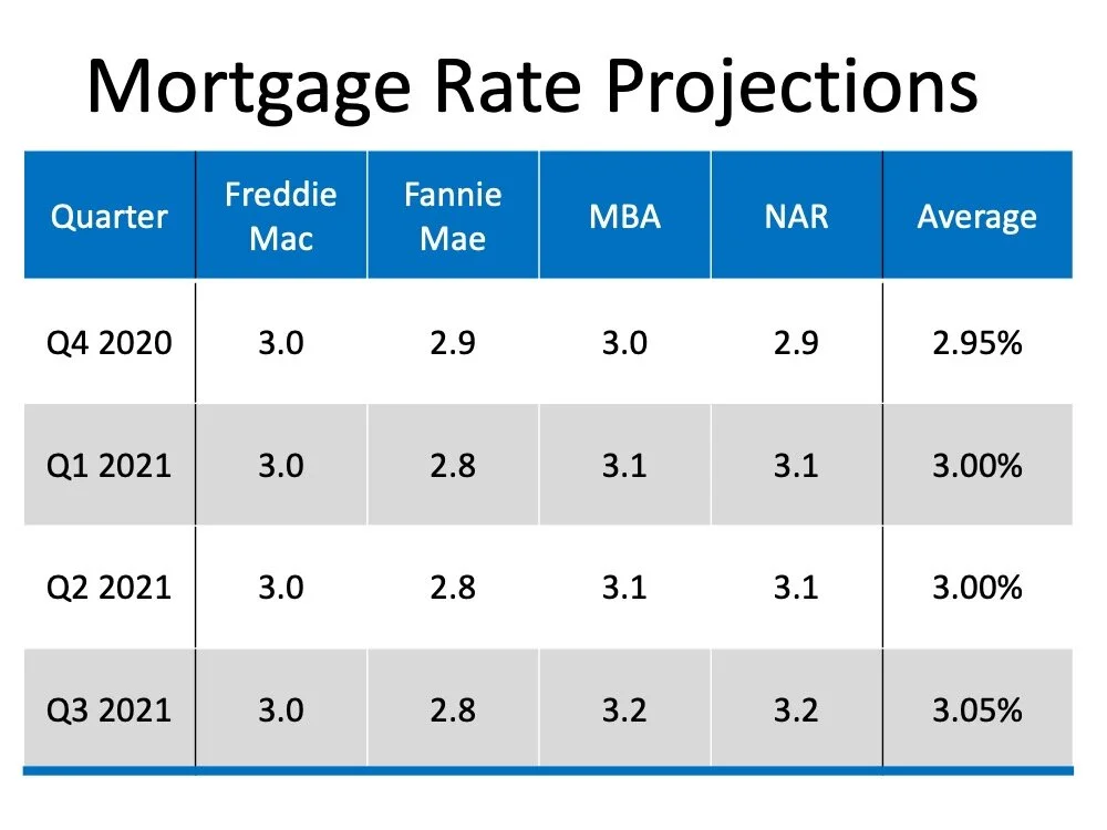While rates are still lower today than they were one year ago, as the economy continues to get stronger and the pandemic is resolved, there’s a very good chance interest rates will rise again. Several top institutions in the real estate industry are projecting an increase in mortgage rates over the next four quarters (See chart below):